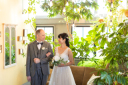 お二人でお花を挟んでシンプルな立ち姿のお写真。お二人の笑顔いい感じですね。