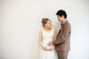 植物に囲まれ、柔らかな自然光が入るナチュラルな雰囲気に惹かれてこちらのスタジオを選びました。出逢いのきっかけとなったバイオリンを持ち、私たちらしい写真を撮っていただきました。ヘアメイクさんも私の好みやイメージを的確につかみ、ナチュラルに可愛く仕上げてくださってとても嬉しかったです。もう少しで子どもが産まれますが、「あなたがママのお腹にいる時に撮ったのよ♪」と見せてあげるのがとても楽しみです。