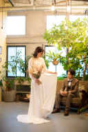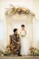 王道のAラインで、ボリューム感のあるドレスをお召しになられた新婦さん。元気で明るい笑顔の新婦さんを、より引き立たせてくれていました。