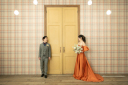 ご新婦様からのバックハグ♡おふたりのご衣装のお色味も少し似ていてなんだかペアルックみたいです♡
