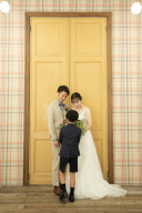 窓から差し込む光が緑の空間をより柔らかく、優しく演出します。おふたりの間のドライブーケもとっても素敵です♡