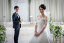 松山店のチャペルで、洋装チャペルフォト。 大聖堂チャペルを使って、オリジナルフォトに。