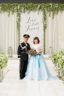 移動をして、チャペルをバックにご撮影です。晴天のコントラストとお2人がとてもマッチしています。