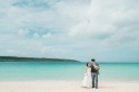 青い海を背景に笑顔で見つめあうお二人がとても素敵です♪
