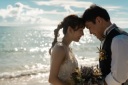 手を取り合いながら浜辺をくるくる回るお2人☆楽しそうな雰囲気がすごくいいですね~♪