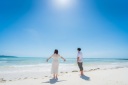 色違いのシャツを着て私服ビーチ撮影♪手をつないで歩く後ろ姿もいいですね~