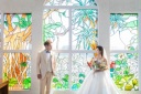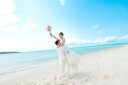 青い空と幻想的な雲の動き、そして透明感伝わる宮古ブルーの海。背景の大橋も宮古らしさを演出し、お二人だけの時間が流れているのが伝わる素敵な一枚となっています。