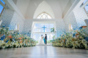 ミラージュチャペルの特徴の1つでもあるお花で埋め尽くされたフラワーウォールは写真がより華やかになりますね☆