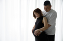 おでこをコツンとしながら向かい合って...シンプルな背景に一輪の花が映えますね♪
