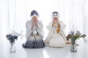 お揃いのお洋服でご来店くださいました。ファーストトイと一緒に撮影。お二人で撮影する最後の一枚。
