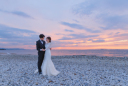 砂浜が広がる海をバックに和装の撮影はとってもおしゃれ。お二人の願いを叶えます。