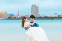 沖縄のふかふかな砂浜にちょこんと座り、奥様から【ちゅっ♡】