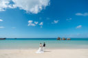 お支度を終え、ビーチ撮影をスタート♪おふたりの後ろ姿から☺︎