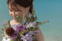 ビーチ撮影スタート!!透き通るライトブルーの海とウェディングドレス!そのままでもお綺麗な新婦さんが、より華やかに!