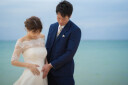 砂浜にゴロン♪沖縄の白いサラサラな砂浜は、気持ちが良くおふたりにもリラックスしていただけます♡素敵な笑顔ですよね♡