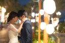 ヤシの木をバックに大人なショット!お鼻を合わせて瞳を閉じおふたりの時間♪