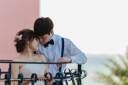 ロングベールが、なびいて素敵なショット!!おふたりの大人な表情も素敵♡