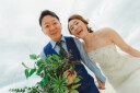 風になびくベールと、青い海青い空!!そして素敵なおふたり!Good!!