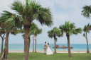 ビーチは白のウェディングドレスで爽やかに♡2ロケーション目からは何色のドレスを着るか、ワクワク♡