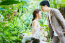 その岩に今度は新郎さまが腰かけて、そこに花嫁さまが寄り添う。さりげないしぐさが全てお二人らしいお写真です。