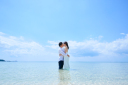 お待ちかねのビーチイン!!ドレスを着て海に入るって、なかなかできないですよね