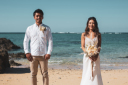 コントラストが、二人を引き立てます。亜熱帯の植物に囲まれて、沖縄を感じてください