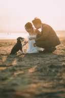 洋装に着替えて海での撮影!おふたりともブラックドレス・タキシードに着替えて雰囲気を合わせました!