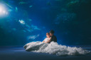 庭園での撮影の後は、ドレス・タキシードに着替えて海で撮影。雲のディティールが不思議な美しい青空でした。