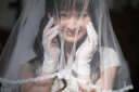 ふたりの世界と日常を画すようなベールカット。1枚フィルターを通したようなカットは幻想的