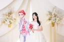 チャペル撮影だけではなく、フラワーバックの背景でも撮影✿チャペルの時より少し距離を縮めて記念撮影♡