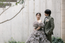 振り返ると、普段とは少し違った特別な新婦様のお姿。新郎様、驚きと幸せを感じる表情ですね!