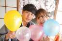 お持ち込みのガーランドをお二人で持って撮影しました。