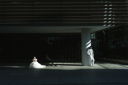 障子に中からお二人を。白黒にすることで雰囲気のある写真に。