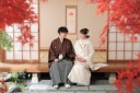 紅葉狩りをしているお二人の雰囲気を。新郎様が見つけた小鳥を探しているような雰囲気で撮影してみました。