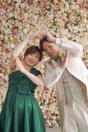 ご新郎様の優しい頭ポンポン。お花に囲まれたお二人。
