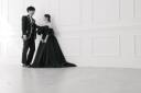 お二人の撮影スタートです。まず初めはお二人のかっちりとした立ち方からお撮りしていきます。背景がシンプルだからこそお二人の衣装が映えますね。