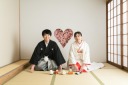 スタジオを変えて正座のお写真をもう一回!ゆったり雰囲気のお二人は、可愛いハウススタジオがとてもお似合いなのでした!