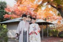 新婦さんは木漏れ日に入って柔らかい雰囲気に。和装のコーディネートもしっかり見えるようお撮りいたします。