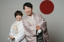 和装の伝統的な立ち姿!! こちらは、台紙にも入るかっちりとしたもっともフォーマルな立ち姿のお写真です。お二人の記念に是非今日という日を形に残しましょう。