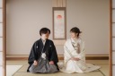 和装の伝統的な立ち姿!! こちらは、台紙にも入るかっちりとしたもっともフォーマルな立ち姿のお写真です。お二人の記念に是非今日という日を形に残しましょう。