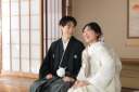 屋内庭園と洋装スタジオPLUSで撮影されたお客様♡まずは和装で屋内庭園から撮影開始です!室内にいながらまるで本格的な日本庭園にいるようなお写真が撮れますよ◎