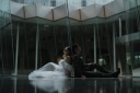 3着目はウェディングドレスで。クラシカルなドレスは表情まで引き締まりますね。