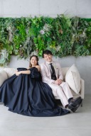 今度はお花が一面に広がる華やかな背景で。お二人でゲーム機を手にした、遊び心のある一枚です♡