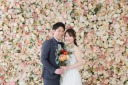 結婚の「結」をバックに。ウェディングフォトならではの一枚ですね!