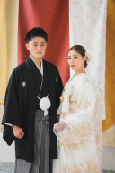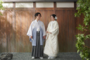 和装ならではの番傘を使用。微笑みながら、新婦様を見つめる新郎様から優しさが伝わってきました。