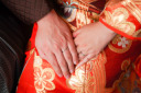 指輪交換シーン。ロケーションでもウェディングシーンを。