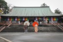 階段を登っていくお二人。振り返った瞬間をおさめました。