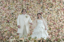 ご新婦様のお着物をより美しく見せる形。シンプルな背景だからこそお二人の衣装がとても映えます。