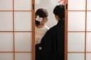 場所を変えて日の丸の背景に!ぎゅっとくっつくおふたりが可愛らしいです^^