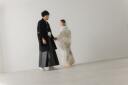 おふたりの全身のお写真から。扇子を持ってかっちりと。